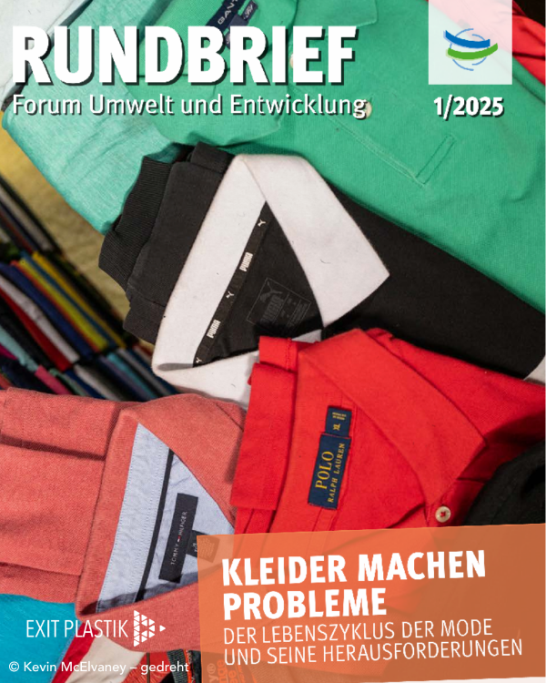 Der Rundbrief „Kleider machen Probleme“ des Forum Umwelt und Entwicklung beleuchtet, wie Textilien in nahezu jeder Stufe der Wertschöpfungskette mit schweren Menschenrechtsverletzungen und enormen Umweltbelastungen in Zusammenhang stehen.