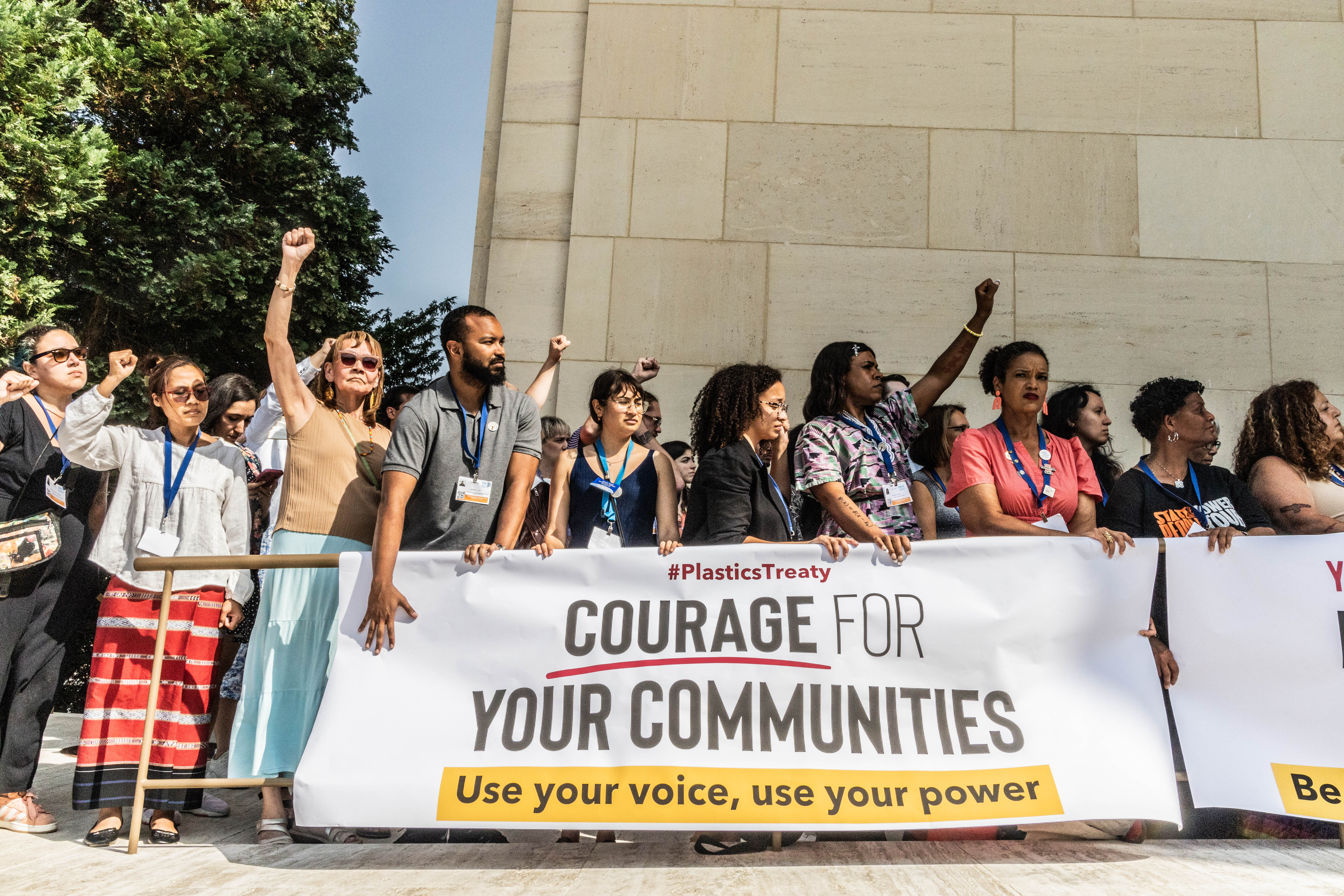 Nur wenige Minuten nachdem der Vorsitzende des INC den neuen Entwurf des Abkommens verรถffentlicht hatte โ€“ in dem die wichtigsten Bestimmungen zur wirksamen Bekรคmpfung der Plastikverschmutzung fehlen โ€“ veranstalteten die betroffenen Gemeinden eine Aktion direkt vor dem Plenarsaal. Diesmal erhoben die Menschen laut und deutlich ihre Stimme und forderten ambitionierte Lรคnder auf, โ€žihre Macht und ihre Stimme zu nutzen, um die Plastikverschmutzung fรผr die Gemeinden, unseren Planeten und zukรผnftige Generationen zu beendenโ€.