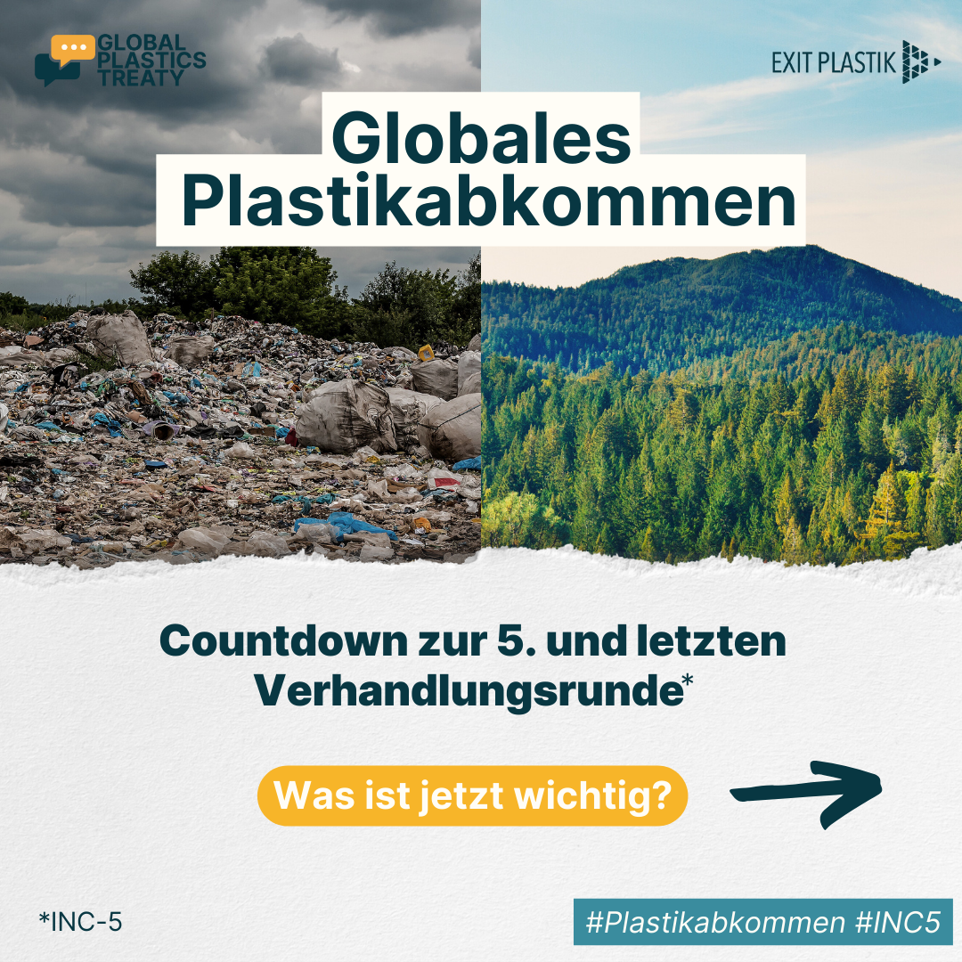 Vom 25. November bis 1. Dezember 2024 fand die letzte geplante Verhandlungsrunde (INC-5), für ein globales Plastikabkommen in Busan, Südkorea, statt. Eine Einigung über einen Abkommenstext konnte bei dem Treffen in Busan nicht erzielt werden.