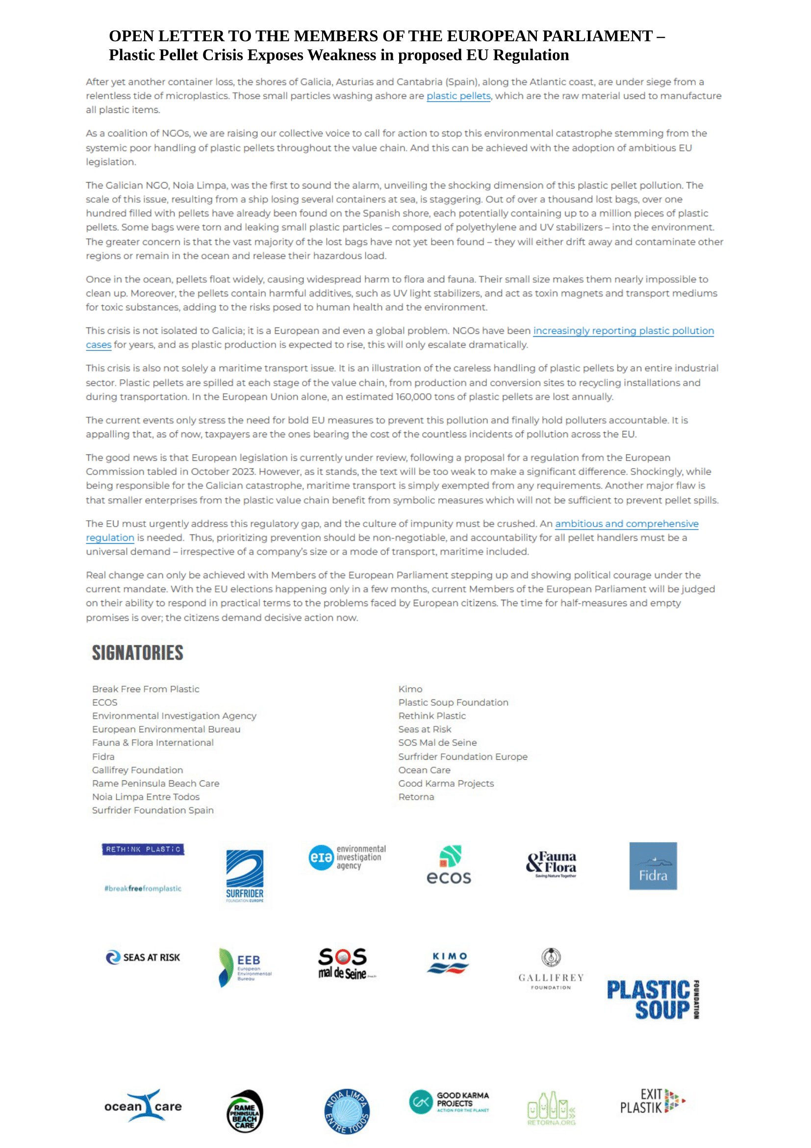 Offener Brief: Plastikpellet-Krise offenbart Schwachstelle in vorgeschlagener EU-Verordnung